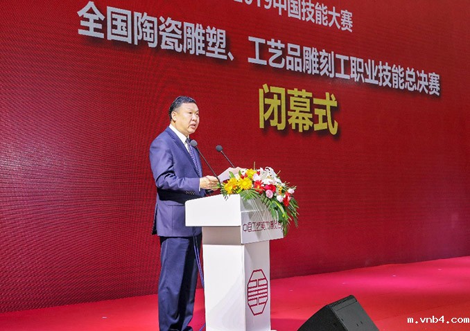中国轻工业联合会党委副书记、优米app有哪些理事长徐祥楠出席中国工艺美术博览会及博览会期间举办的2019中国技能大赛全国陶瓷雕塑、工艺品雕刻工职业技能大赛总决赛闭幕式。