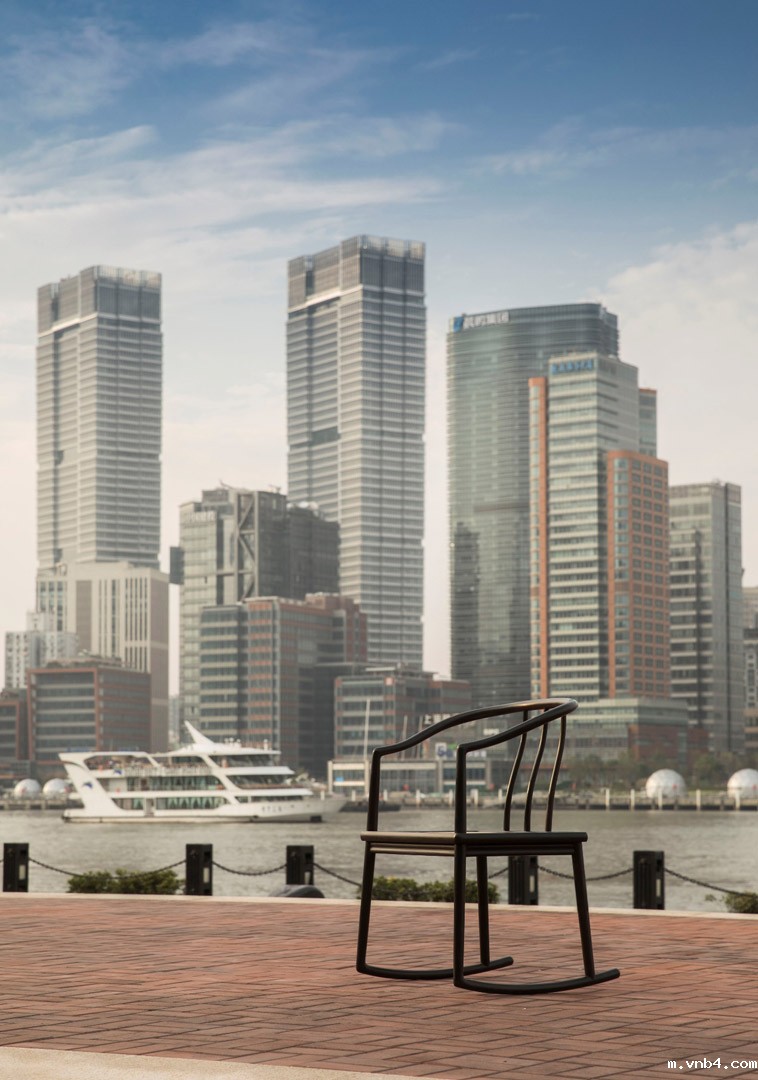云摇椅诞生于 2012 年。那是设计师陈燕飞的灵光一现:“如果让圈椅摇晃起来,是什么样子呢?”于是,以天地圈椅为基础,大胆纳入西式摇椅元素,几番弧度打磨,调整重心,云摇椅诞生了。