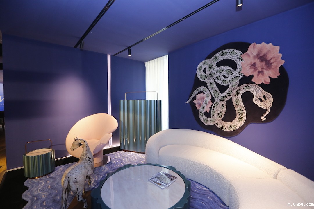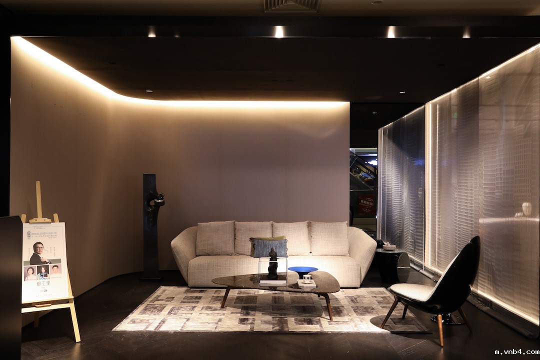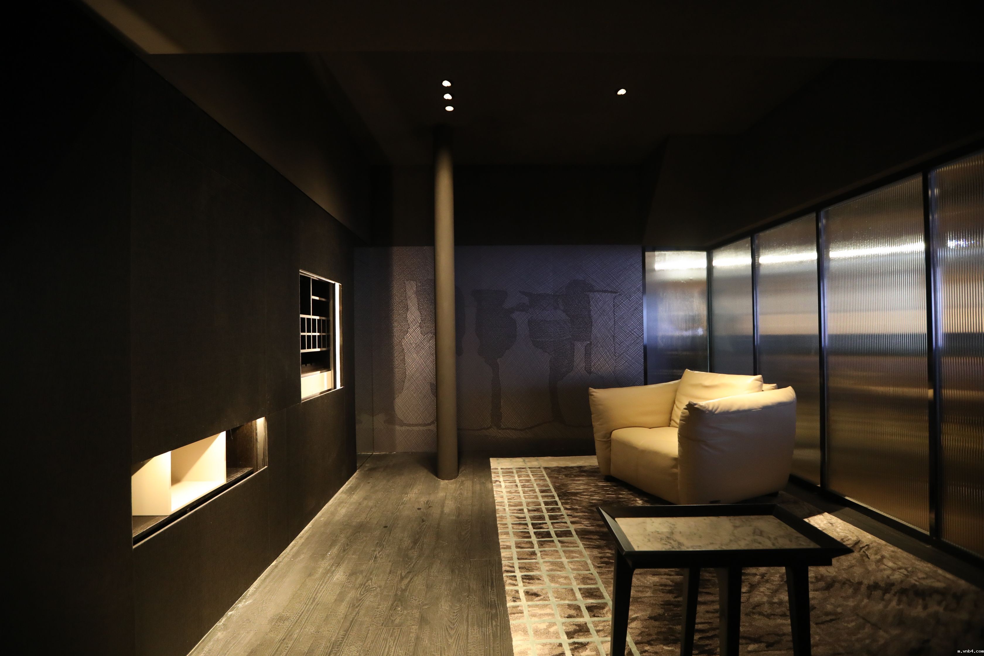 ADF后象设计师事务所创始人兼设计主持陈彬先生说:“这次设计的地毯是我个人画展的一幅作品,主题名为光尺,想通过自己对生活的态度来度过每一天的时光,用地毯去反推空间,我给这个展间的命名是“一个人的客厅”,我想传达的是人对事物、对信息、对物质的克制。”