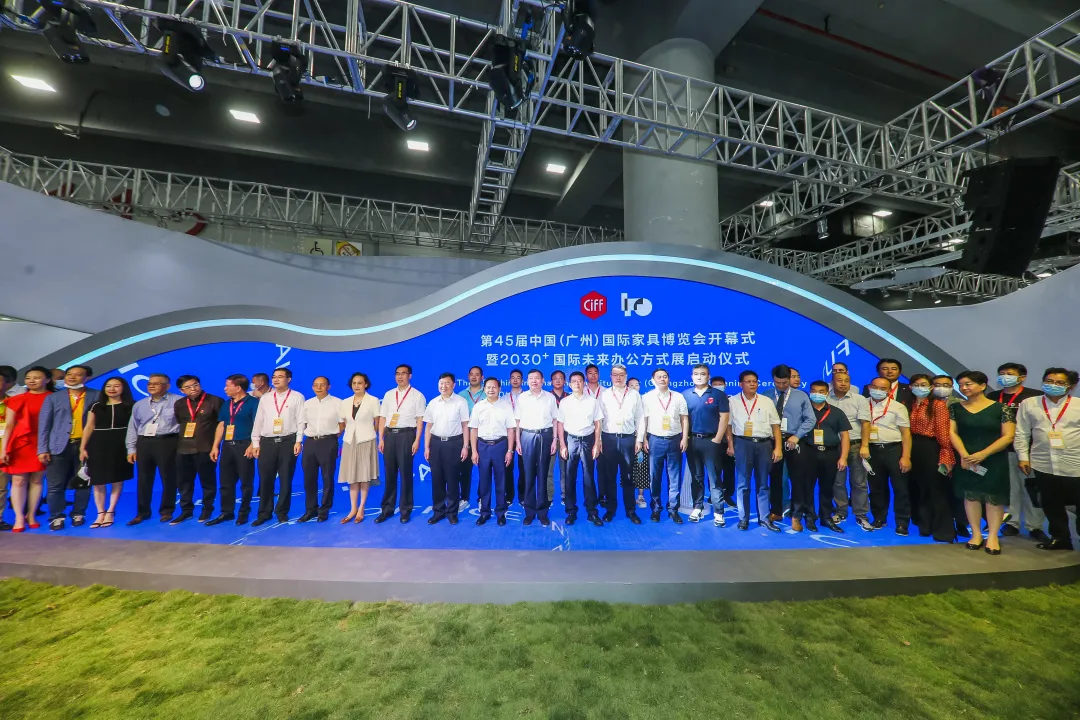 第45届中国(广州)国际家具博览会开幕式暨2030+国际未来办公方式展启动仪式领导和嘉宾合影