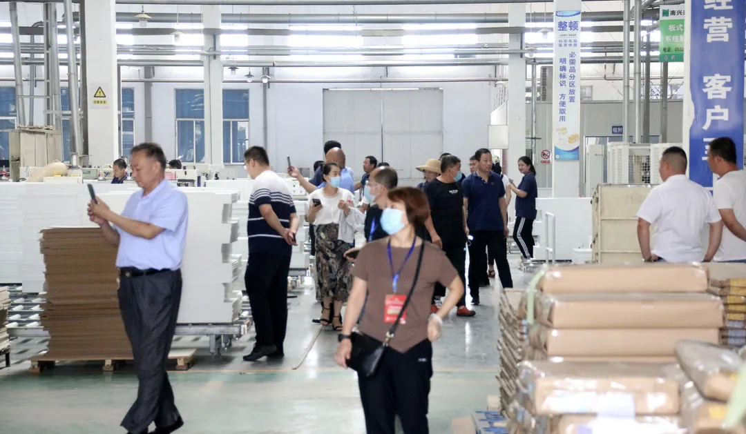 30日上午,部分与会企业实地参观了富士木业板式定制生产车间,东宇鸿翔科技有限公司产品展厅、实验室、装饰纸生产车间和定制家居展厅。