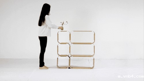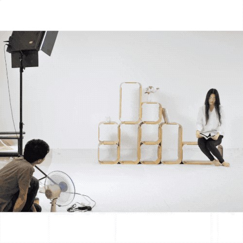 两种大小模块的架子,能够根据自己的喜好与空间摆放出千变万化的组合方式,书架之间通过隐藏的强磁来连接,磁铁藏于框架加厚部分内部,既不影响外观,又能使其达到稳固与自动对齐贴合的效果。
