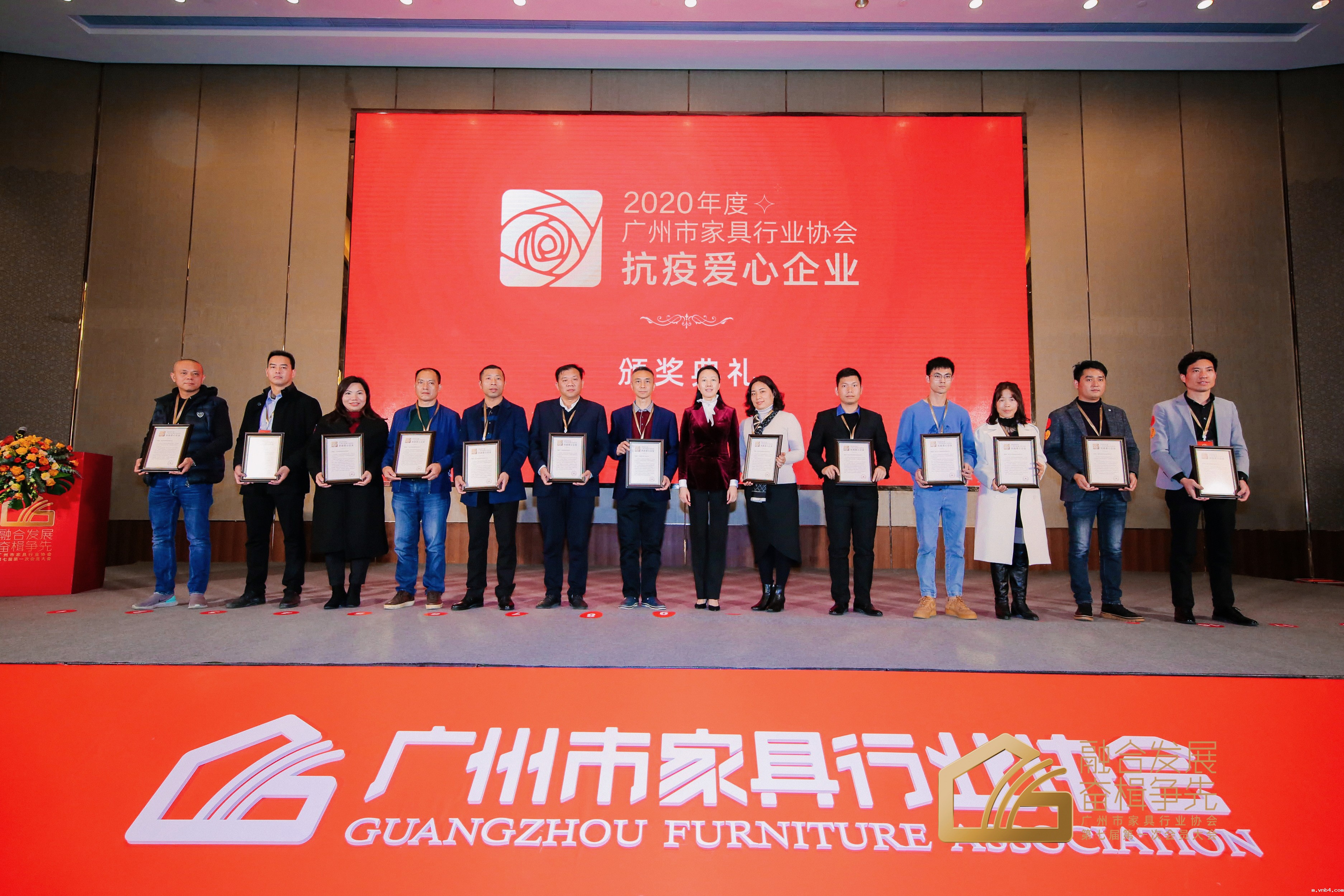 会议最后举行了2020年度广州市家具行业协会“抗疫爱心企业”颁奖典礼。为树立典型、鼓舞干劲、引导家具行业企业进一步履行社会责任,大力弘扬甘于奉献、大爱无疆的崇高抗疫精神,协会在会员中开展2020年度广州市家具行业协会“抗疫爱心企业”推荐学习活动。经企业自荐和推荐,授予广州市百利文仪实业有限公司等53家企业2020年度广州市家具行业协会“抗疫爱心企业”荣誉称号。