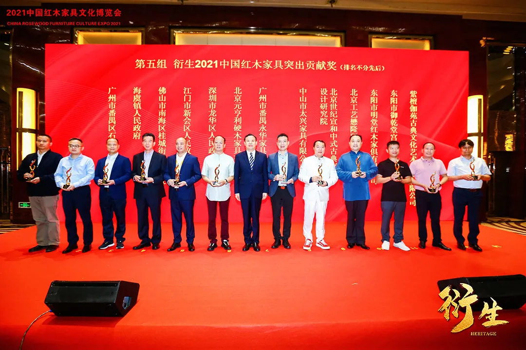 在当晚举办的衍生——2021中国红木家具文化博览会红木之夜晚宴上,举办了衍生——2021中国红木产业颁奖仪式。