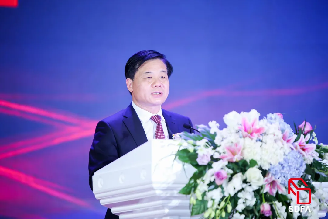 山东省轻工集体企业联社党组书记/理事会主任王哲军首先致辞。他提出,当前,受百年变局和世纪疫情交织影响,作为重要的传统优势产业和民生产业,家具行业要深刻认识到错综复杂的国际环境带来的新矛盾新挑战,要增强机遇意识和风险意识,认清国内国际双循环发展大势,贯彻新发展理念,构建新发展格局,推动更高质量发展,同时坚持创新发展、绿色发展、开放发展、融合发展,走出一条特色化发展路子。
