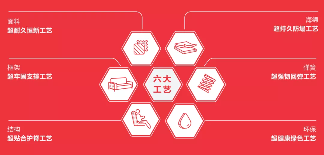 面料、海绵、框架、弹簧、结构、环保作为沙发品质的主要构成。左右基于消费者对这6方面的反馈,经过多年实践探索,构建起超耐久恒新、超持久防塌、超牢固支撑、超强韧回弹、超贴合护腰、超健康绿色的6大专属工艺,并连续多年荣获“中国绿色家具优品”认证,使沙发更耐用、更环保、更舒适!
