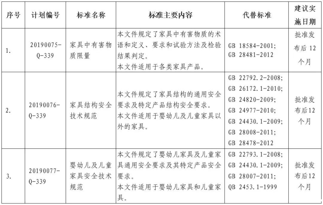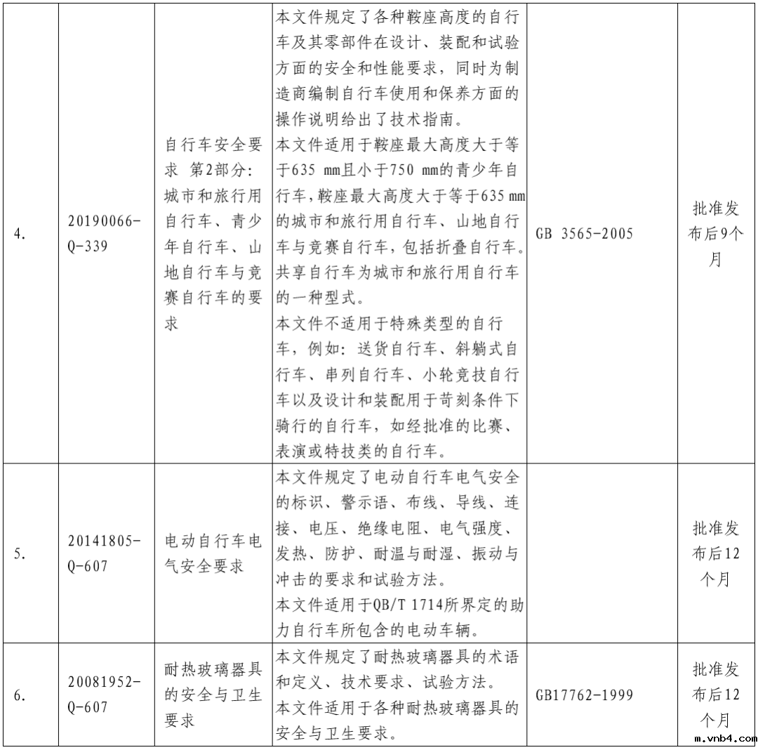 7项强制性国家标准主要内容等一览表