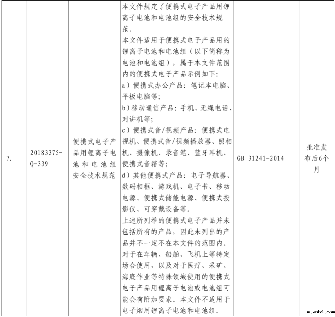 日前,工信部公开征求对《便携式电子产品用锂离子电池和电池组 安全技术规范》等7项强制性国家标准(报批稿)的意见。具体内容如下: