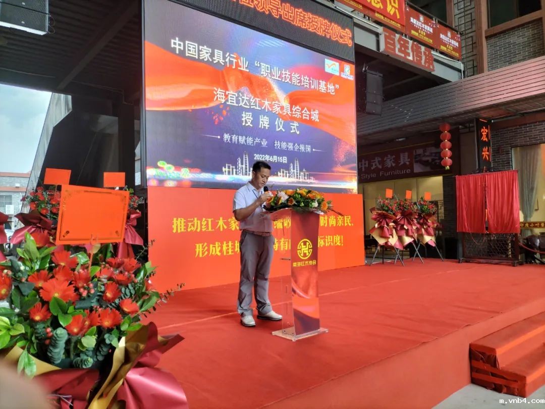 海宜达红木家具综合城总经理何泳朝在仪式上表示,海宜达红木城将不负中国家具行业职业技能培训基地的荣誉与使命,积极探索“教育赋能产业,技能强企报国”人才培育机制,促进红木家具整装转型升级。