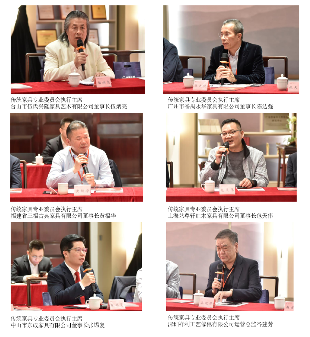 传统家具专业委员会主席团成员和各产区负责人就传统家具专委会的年度工作展开积极探讨,并就传统家具产业的未来发展、专业委员会的团队建设、主席团主席的责任担当、委员会影响力提升等话题进行了充分交流。