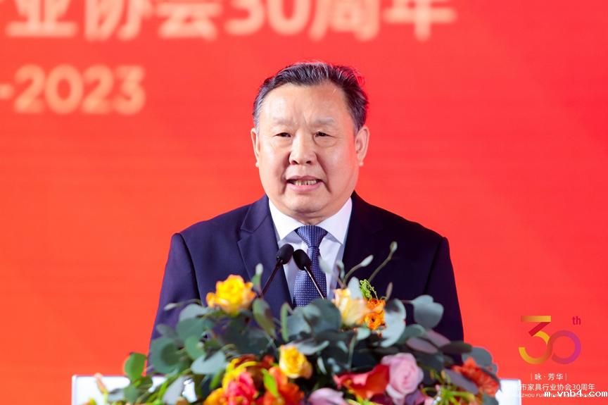 庆典上,广州市委统战部副部长、市工商联党组书记魏国华,广州市社会组织管理局党组书记、局长谢志斌,中国对外贸易广州展览有限公司总经理刘晓敏分别致辞,对广州市家具行业协会30年的成绩予以充分肯定,对广州家具行业未来的发展作出美好展望。