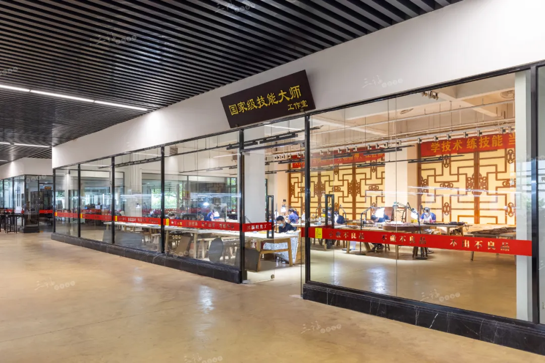 三福集团将文旅融合发展作为非遗保护传承基地建设的重要内容,匠心打造了三福博物馆和福建省首批观光工厂-三福工艺园,通过全息投影、环幕大屏等先进展示方法,沉浸式体验传承有序的红木发展历史,游客还可以通过观光走廊目睹红木家具制作的整个流程,深刻领略到“仙作”非遗的独特魅力和蕴含的文化内涵。三福利用“非遗+文旅”的模式,大力发展新质生产力,深度融合,双向赋能,在助力地区经济发展的同时,更好地弘扬中华优秀传统文化。