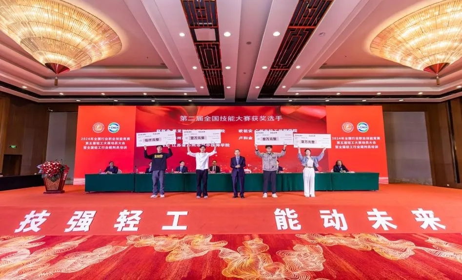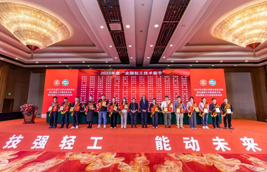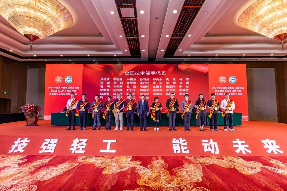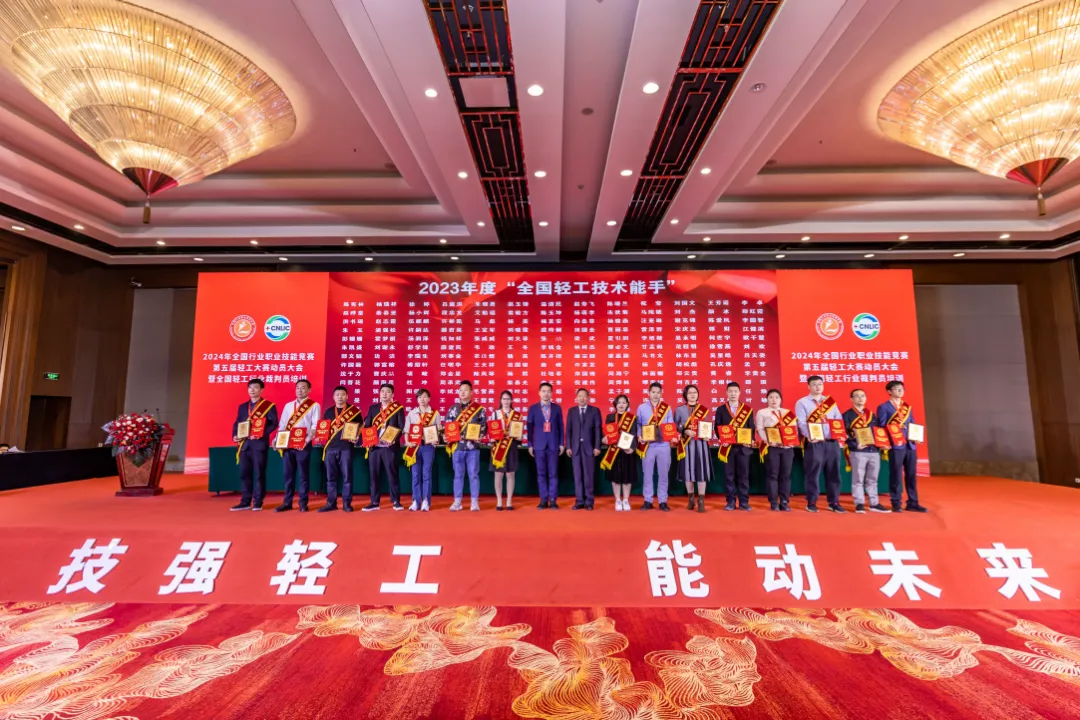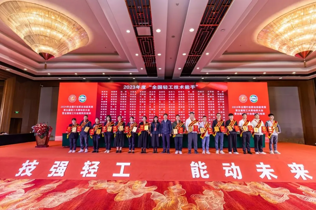 大会为第二届全国技能大赛获奖选手,获得2021-2022年“全国技术能手”荣誉称号的优秀选手及2023年“全国轻工技术能手”荣誉称号的优秀选手进行了表彰。