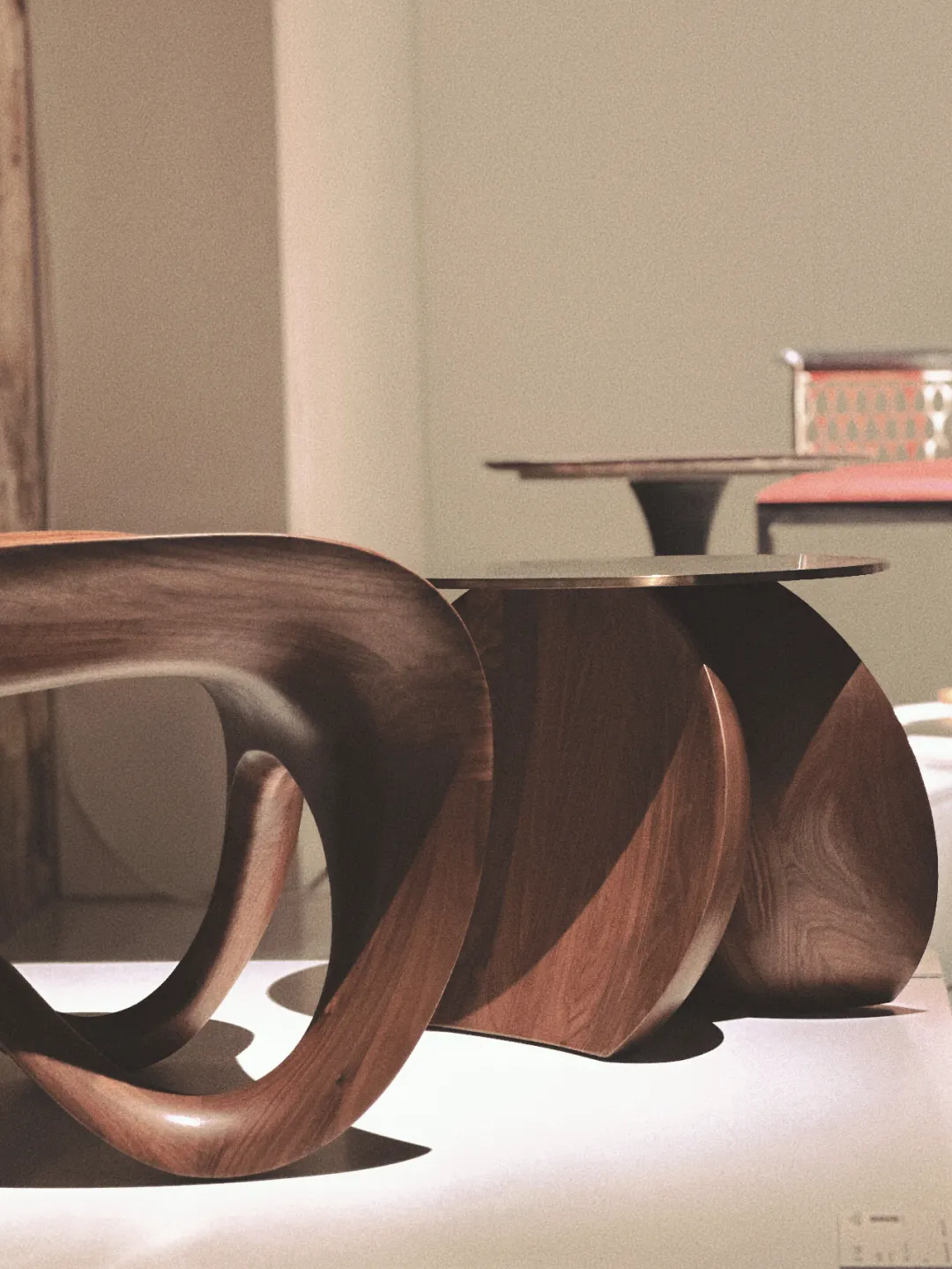 前进家具在本次展览中展示茶台、休闲椅、小边几等产品。前进家具大胆结合了中国新美学意识与前沿审美主义,用更多元的材质、重塑家具器型,将曲与直两个相矛盾对立的概念统一地呈现在作品中,通过实木弯曲工艺让FAS级北美黑胡桃木高贵的纹理走向更为灵动鲜活,既保留了传统木作工艺,又与时俱进,融入了现代化生产工艺,让产品更具质感,满足人们对美好家居的追求。
