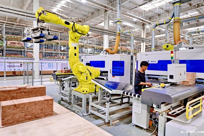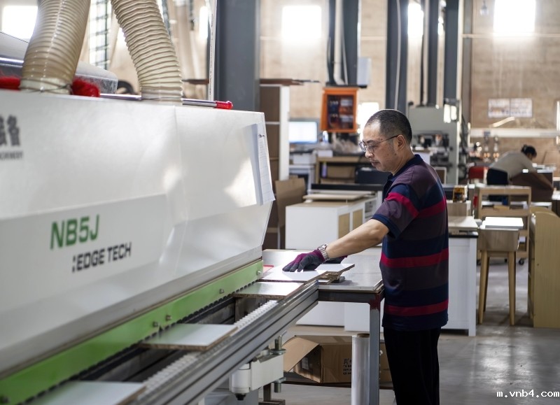 江西省赣州市南康区是国内较大的家具生产制造基地。在南康区圣蒂斯堡智能家居产业园,样品开发主管孔毅在屏幕上轻触按键,机械臂不停地舞动,对一块块木板进行切割、封边、打孔……