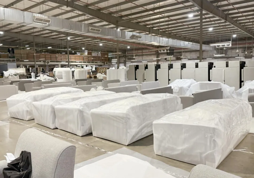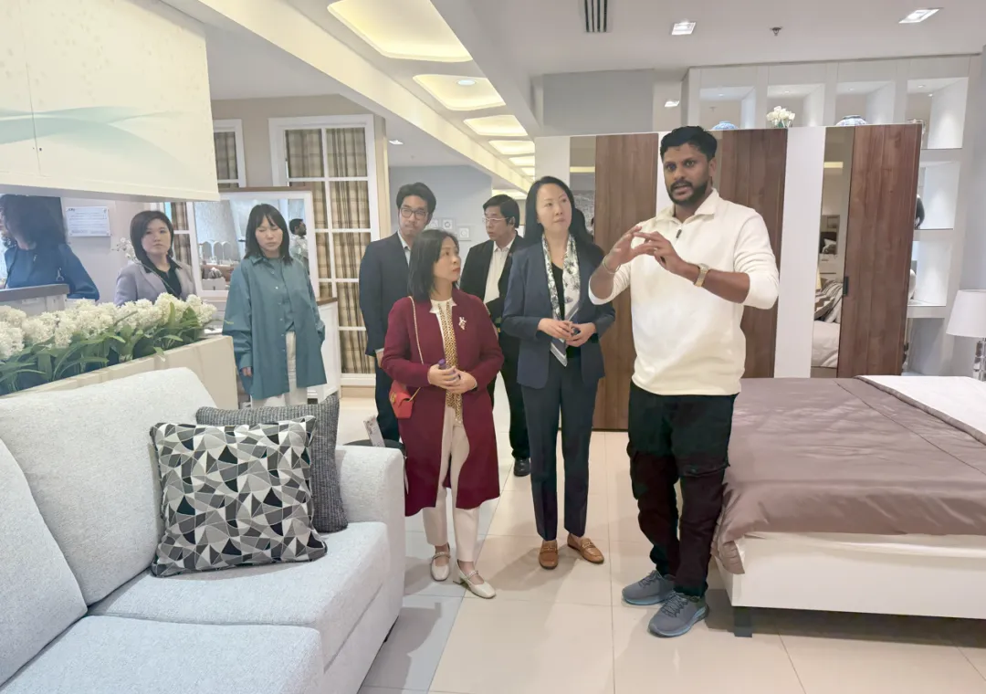 AlMutlaq公司是沙特阿拉伯知名家具品牌,拥有7个展厅、1个仓库网络、1个沙发工厂,主要经营AlMutlaq、城市之窗、Roomz三个零售品牌。考察团一行参观走访了门店和工厂,高级采购专员Shameer Ismail Khader、采购专员Shameem Melethil、采购经理Mohammad Riyaz热情接待。交流过程中,屠祺副理事长兼秘书长表示,AlMutlaq与中国家具企业的合作已持续二十多年,增进了双方在行业信息、市场动态、技术发展等方面的交流与共享。希望中沙双方的合作不仅局限于企业之间的商业合作,还可以在原材料采购、生产制造、物流配送等环节进行资源整合和协同合作,提高产业效率,降低成本,实现互利共赢,共同提升中沙家具产业在全球市场的地位。