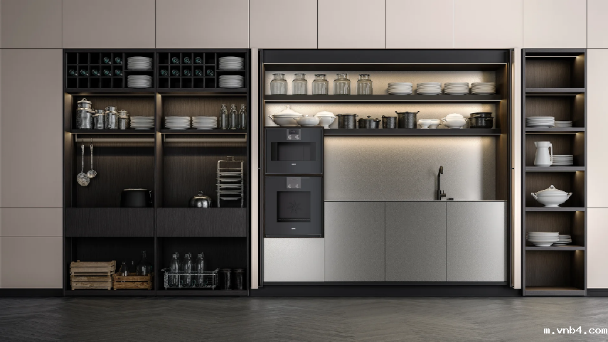 莹白柜门与柠檬黄、橡木色碰撞,构建大胆而和谐的色彩体系。通透玻璃柜打破沉闷,重构现代厨房的时尚语言。