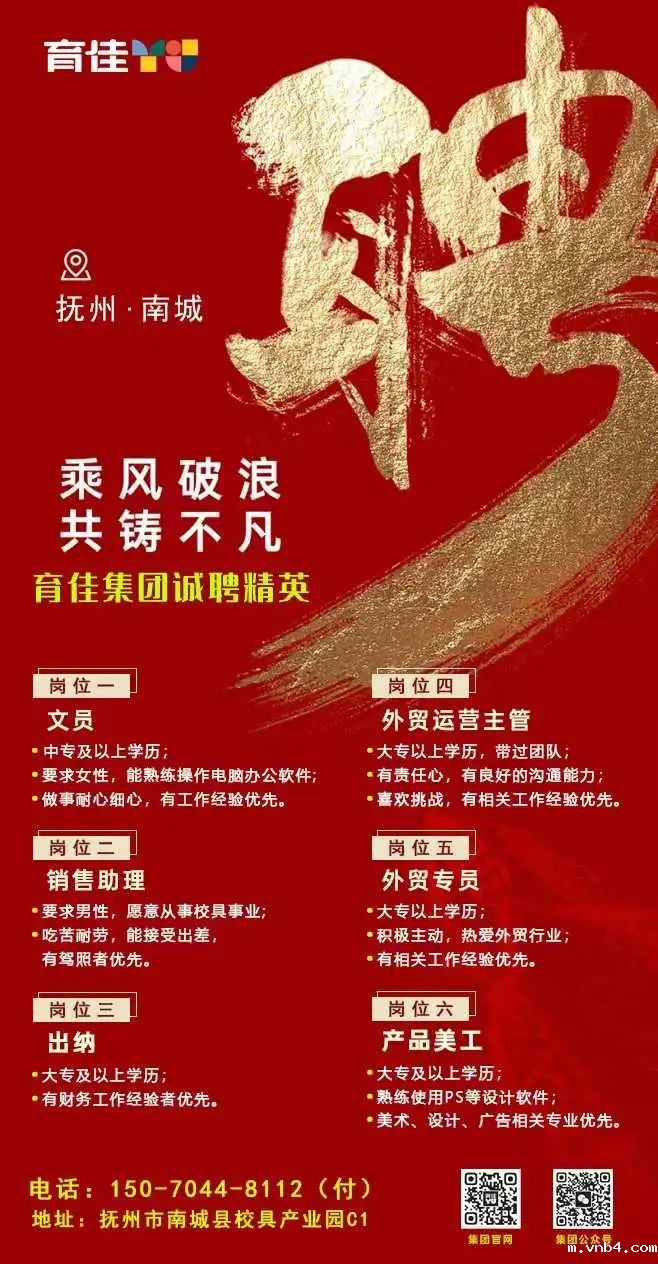 招聘岗位:文员、销售助理、出纳、外贸运营主管、外贸专员、产品美工