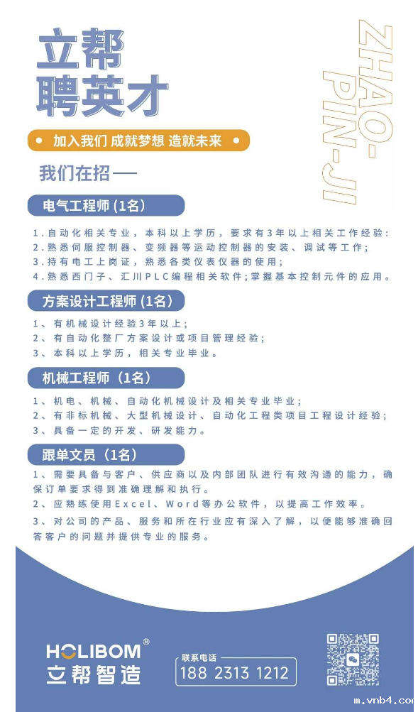 招聘岗位:电气工程师、方案设计工程师、机械工程师、跟单文员
