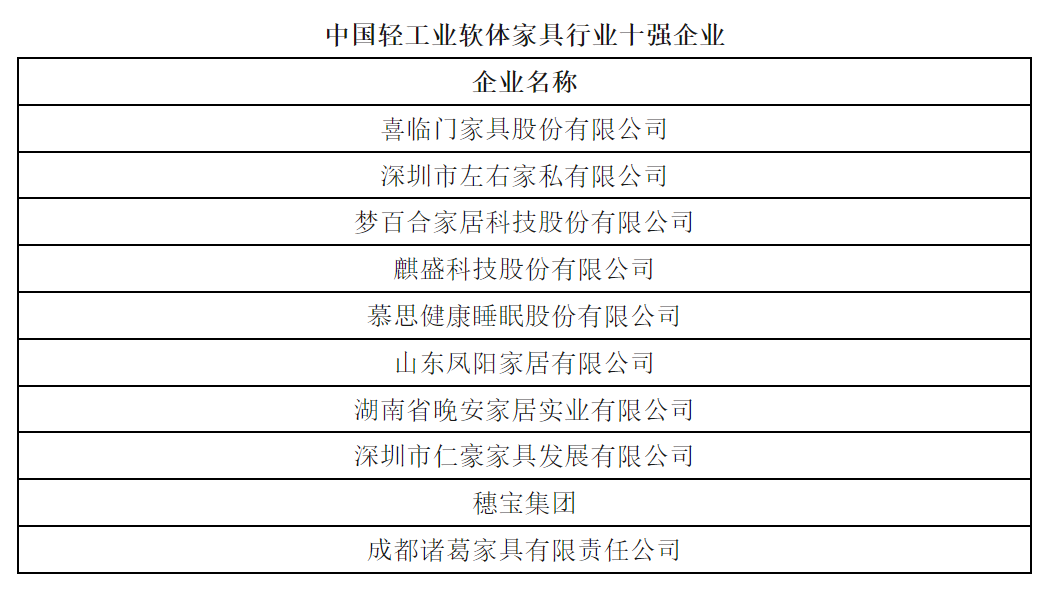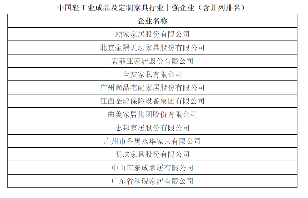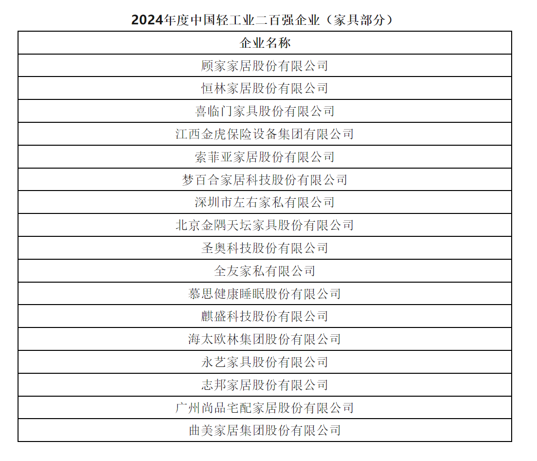 2024年度中国轻工业百强企业、家具行业十强企业名单发布