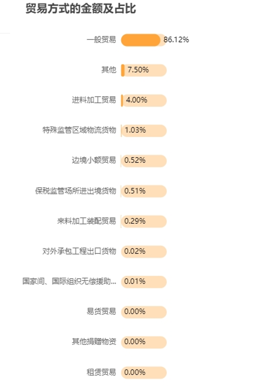 2025年1-6月,我国家具出口主要集中在一般贸易方式,累计出口家具300.67亿美元,占出口总额的86.12%;其他贸易方式累计出口额26.17亿美元,占比7.50%;进料加工贸易方式累计出口额13.96亿美元,占比4.00%。