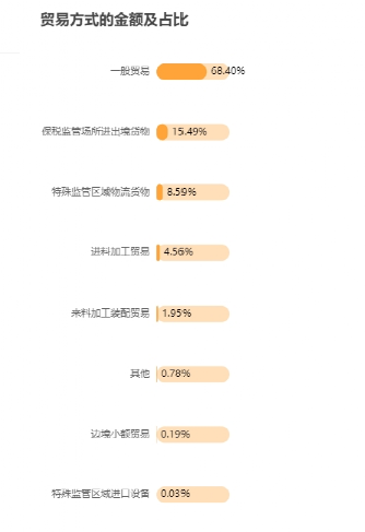 2025年1-6月,我国以一般贸易方式累计进口家具4.89亿美元,占进口总额的68.40%;保税监管场所进出境货物方式累计进口额1.11亿美元,占比15.49%;海关特殊监管区域物流货物方式累计进口额0.61亿美元,占比8.59%;进料加工贸易方式累计进口额0.33亿美元,占比4.56%。